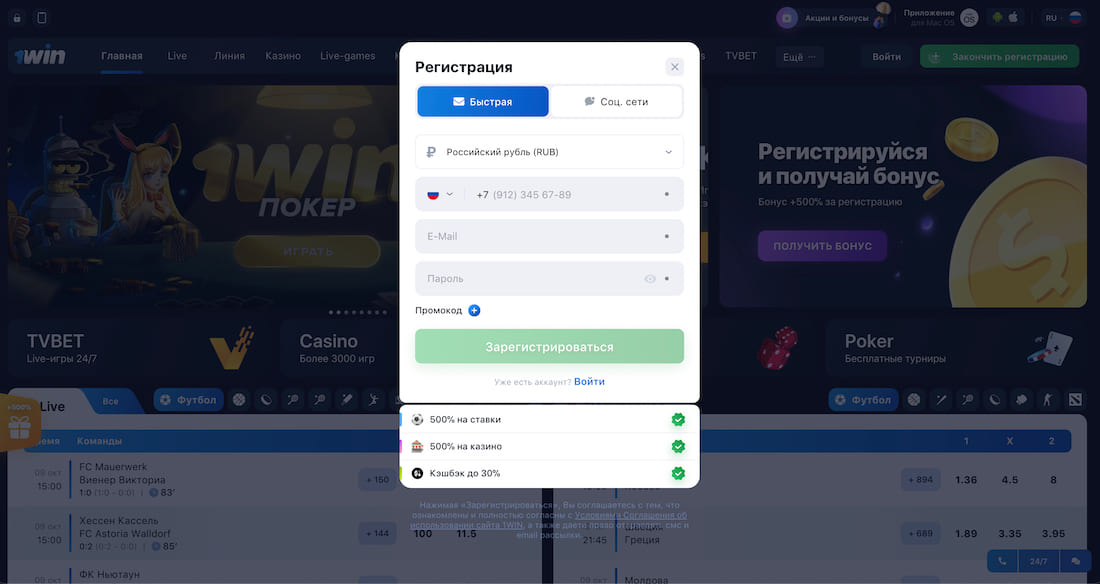 Сама регистрация занимает всего пару минут. Вы можете создать аккаунт через email, телефон или даже с помощью соцсетей. Как только выберете подходящий способ, заполните необходимые данные: придумайте надежный пароль, укажите контактные данные и подтвердите создание учетной записи 1 вин.